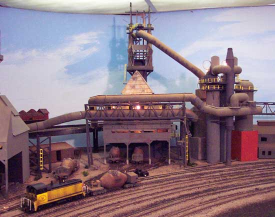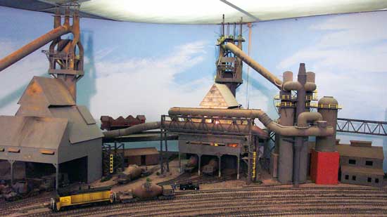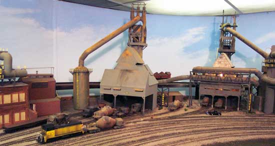 A close up of the two blast furnaces. The tracks that run under the blast furnace are where they load the