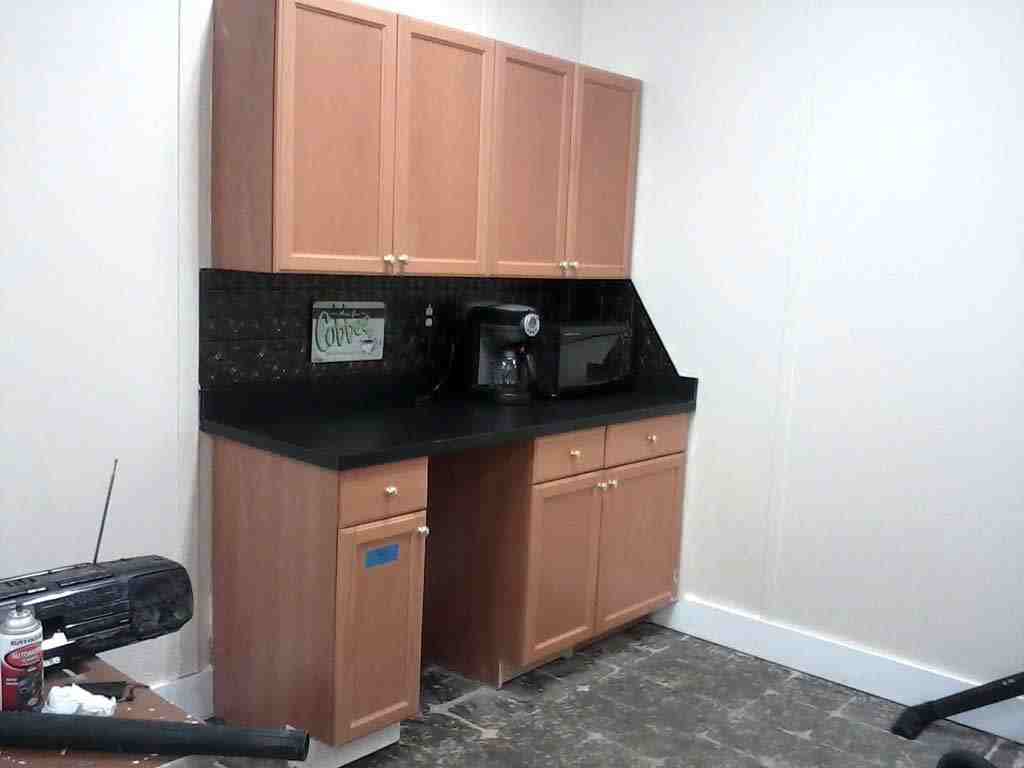 The coffee area has finally had the drop cloths removed and we can start to make a fresh pot of coffee.