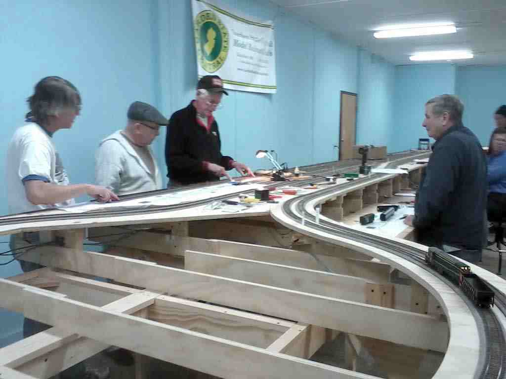 Jimmy, Tommy, Bob and Ron look over the feeder wires that are being fed to George down below.