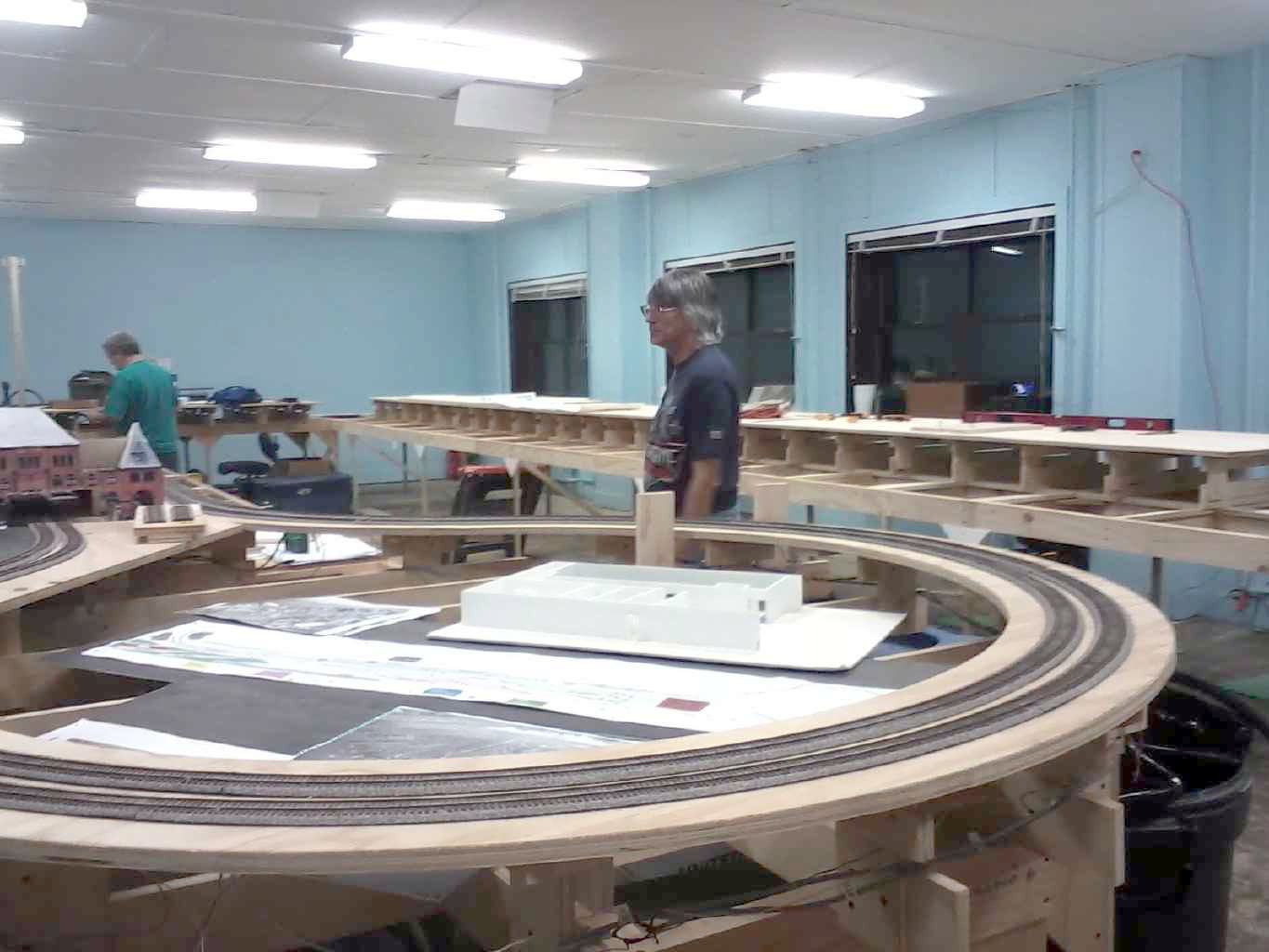 After the top deck has been applied to the first three box frames. (looking over the Jersey City return loop)
