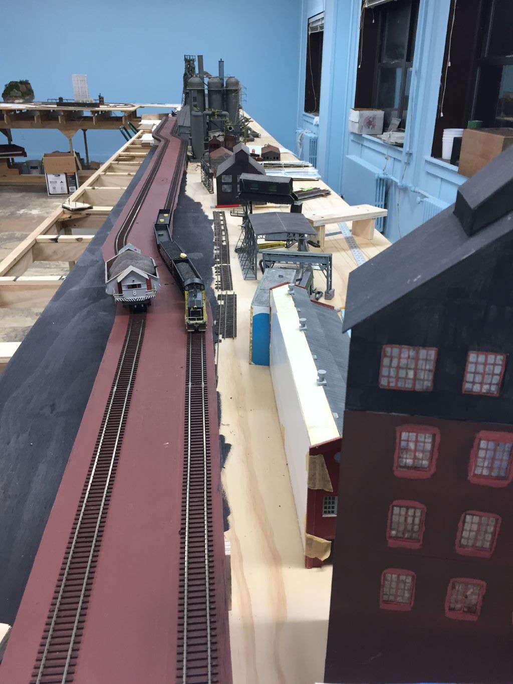 Checking the clearance between the broad/dual gauge and standard gauge tracks. No one wants the charging larry to scrape up against the PB&NE switchers.