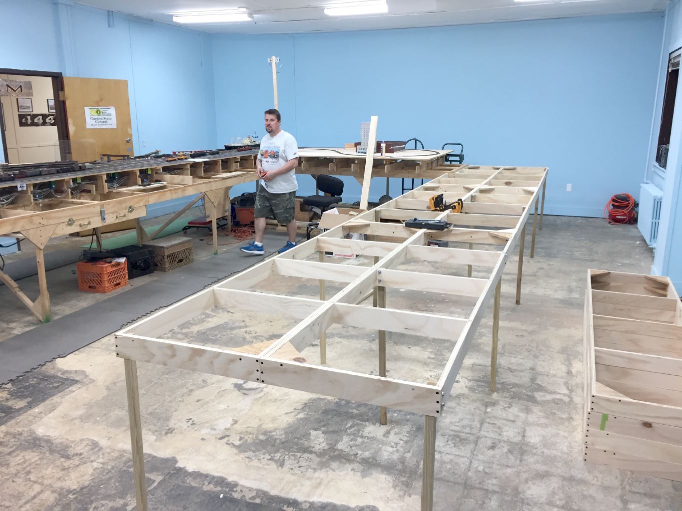 After completed, we’ll have a 3 foot aisle around the outside of the layout and a 6 foot aisle in the middle.