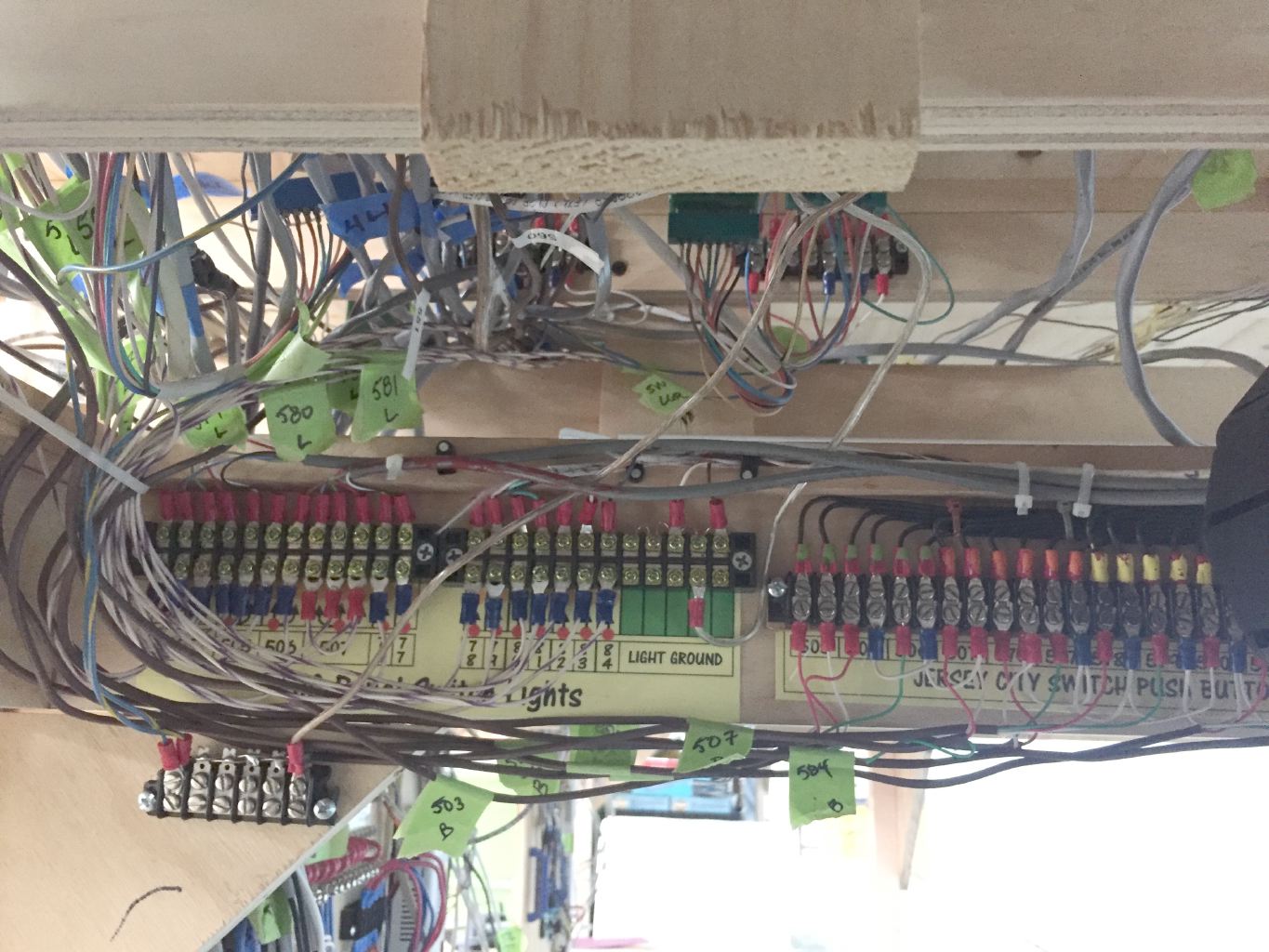 We’ve also been finishing up the wiring for the Jersey City Terminal panel. Here’s the connections to the switch machine buttons and LED switch indicators.