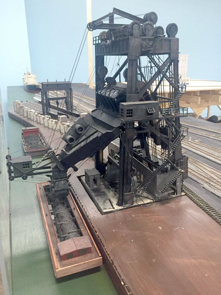 The dumper with the coal barge in place. The ramp leading up to the dumper is on the work bench being built.