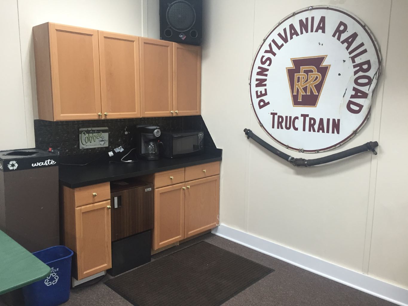 The coffee station, oh how we’ve missed you! Mike came up with a novel way of displaying our freight car brake hoses under the TrucTrain sign. I can’t remember seeing anyone else actually showing the air hoses connected.