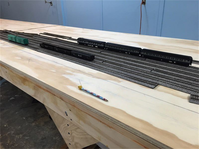Finished roughing out the Elizabthport Yard. Now we know where all the switches will end up.