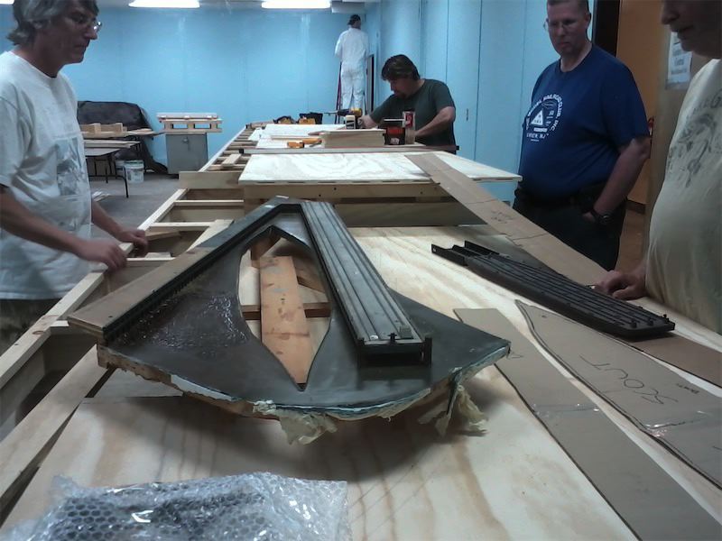 A section of the old Asbury Park layout is brought over to help align the cargo ship and the docks.