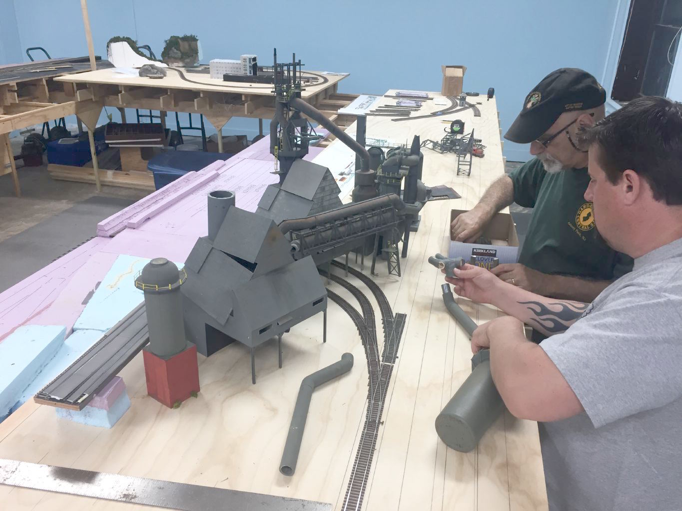 Mike and Jules are checking to see if the spacing of the building and tracks is looking like their pictures of the plant.