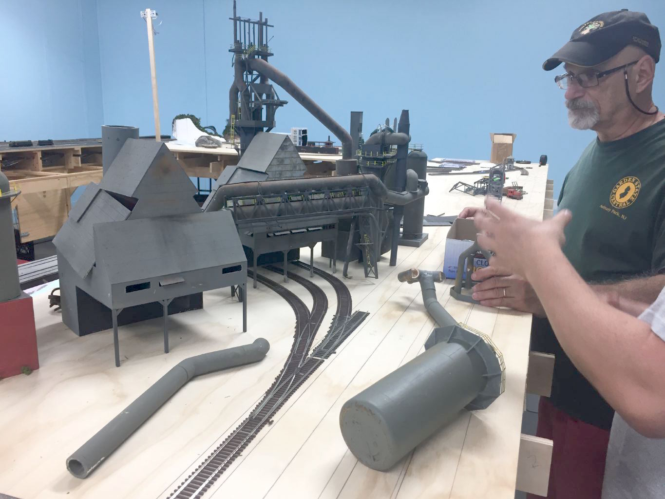 More pieces of the complex are coming out of the storage bins and onto the layout. Well its only temporary to see how the building will fit the area.
