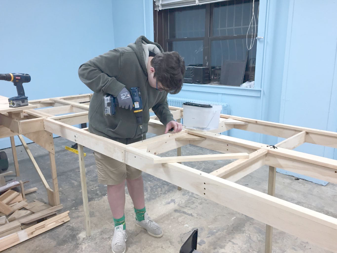 Ben is learning benchwork construction for the first time. I think he enjoyed it. This layout is a little bigger than his N-Gauge home layout.