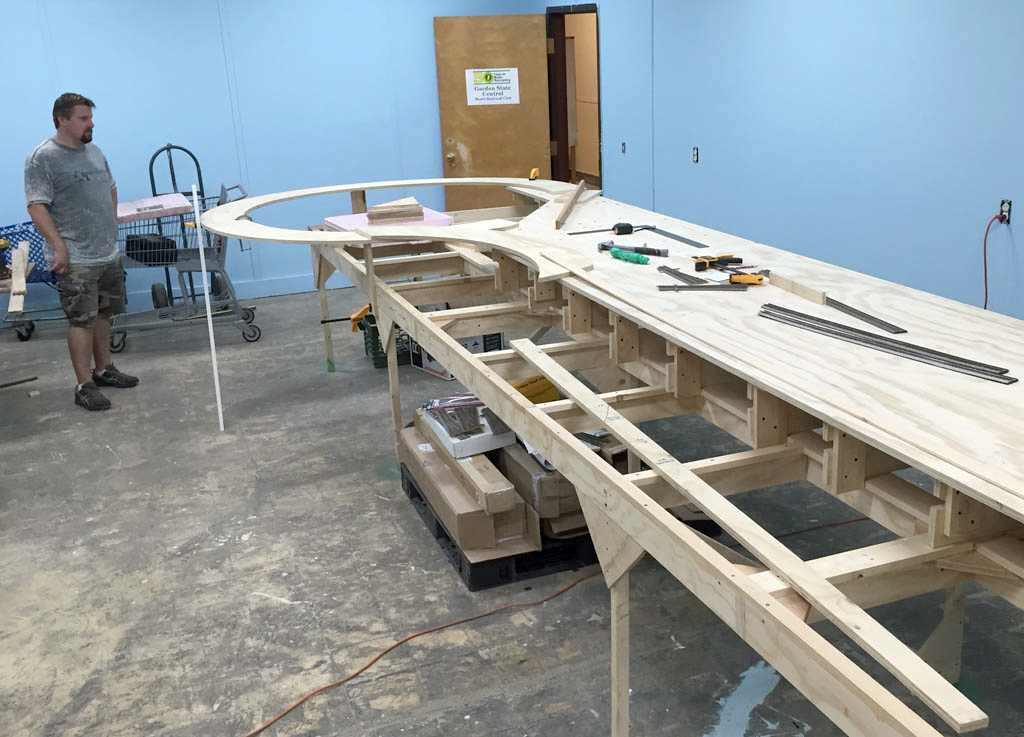 Mike sets up the temporary leg to support the loop