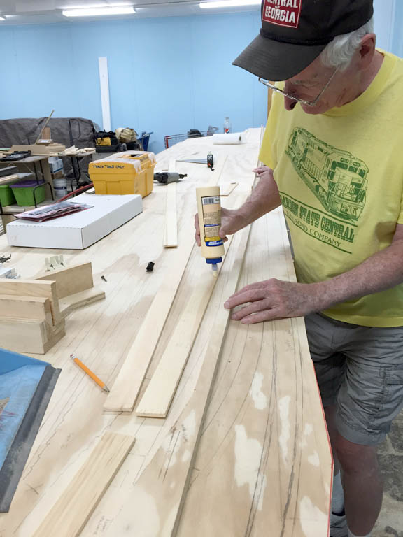 Bob glues the bulkhead support to the water cut out