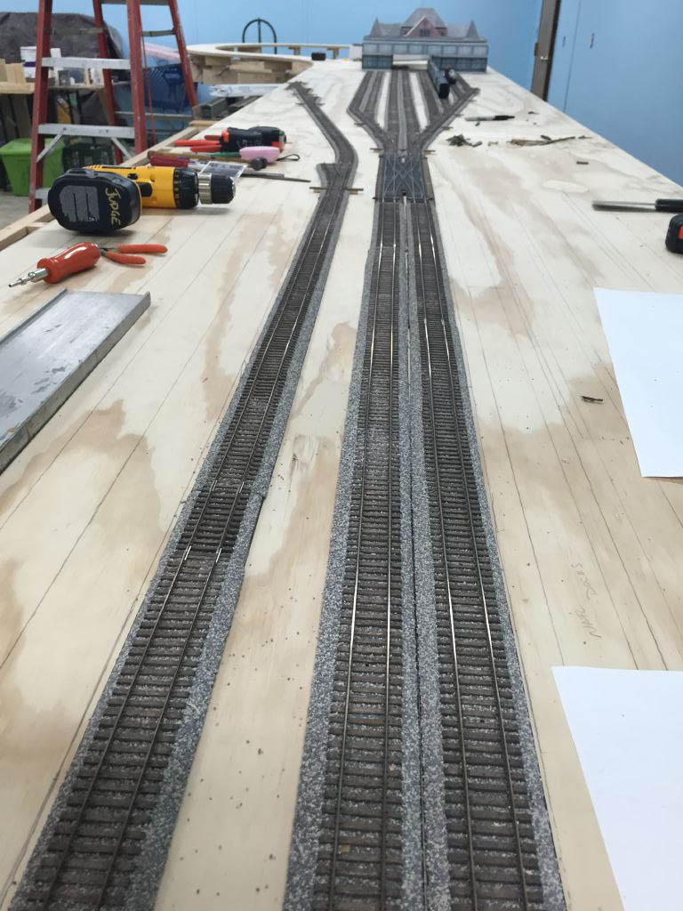 Closer to the terminal, showing the eastbound passing siding on the right, and the westbound mainline on the left. The Elizabethport yard will be on the left of the westbound mainline.