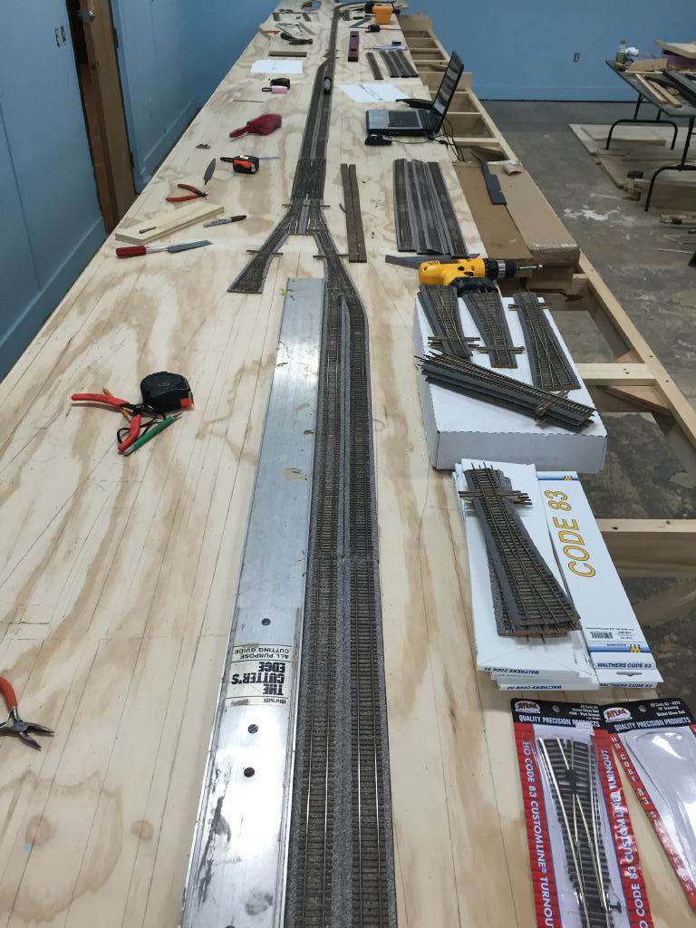 Looking back from the terminal end. The large aluminum piece is the straight edge we used to make the track as straight as possible.