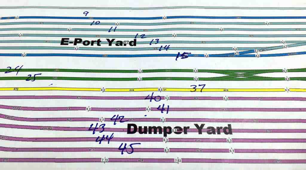 We pre-numbered all the blocks. The blocks allow us to cut power to individual sections of track in case of a short or problem.