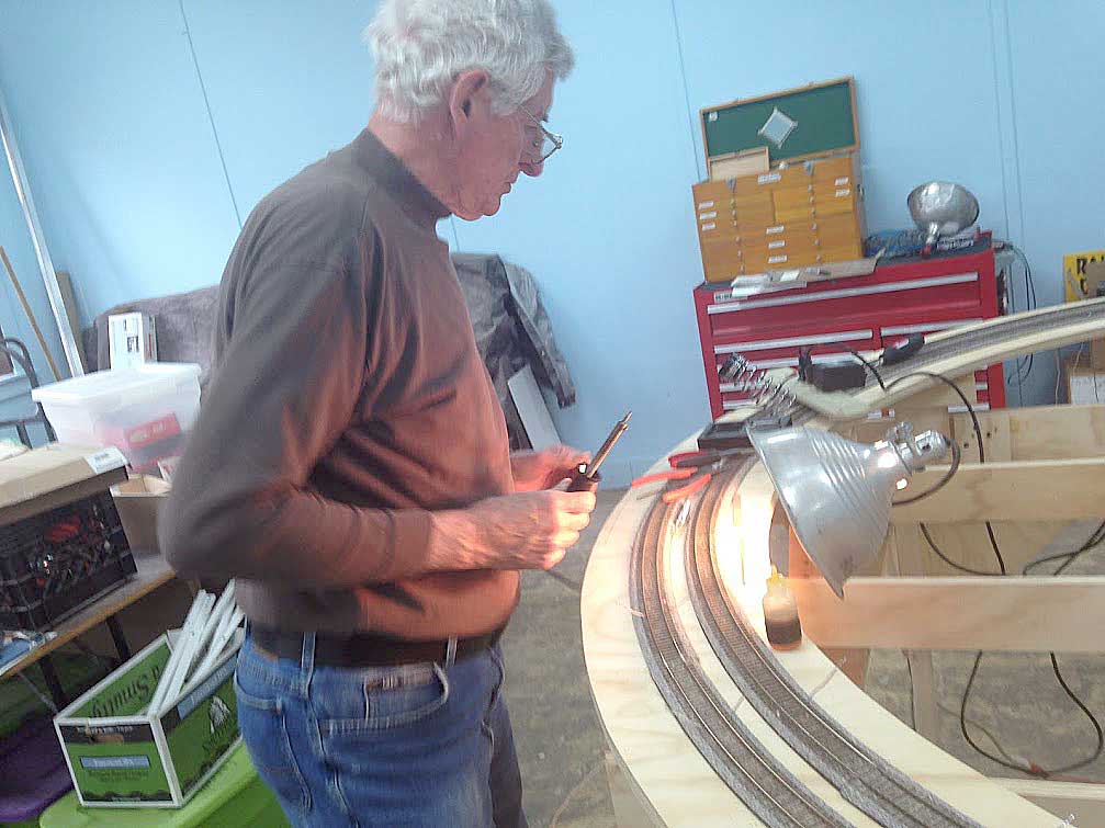 Bob J. is wiring the feeder wires to the rails on the return loop.
