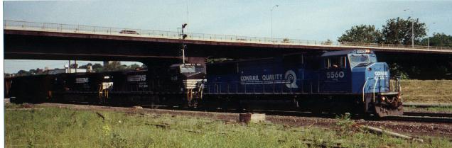 Conrail wide cab Maybe SD60m or SD70 5560 leads a group of NS -8s 9105 &