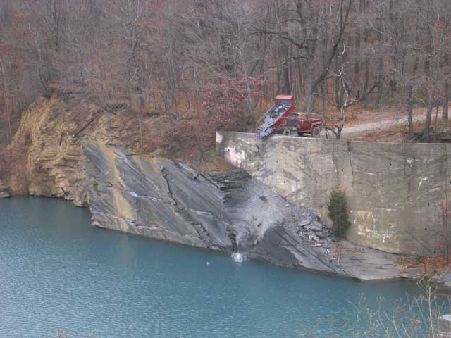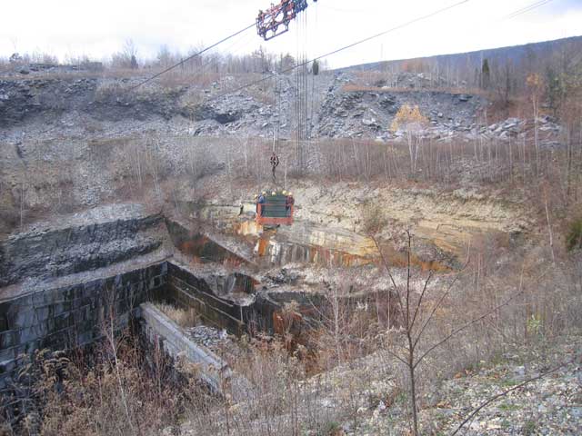 From up here we could watch the quarry guys dump the useless slate leftovers. They