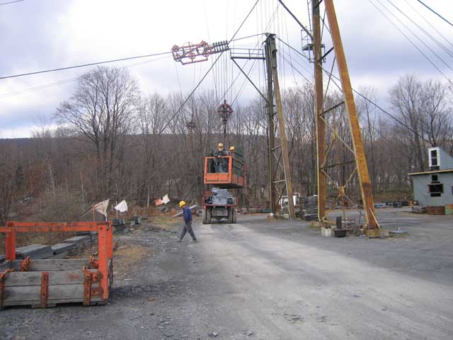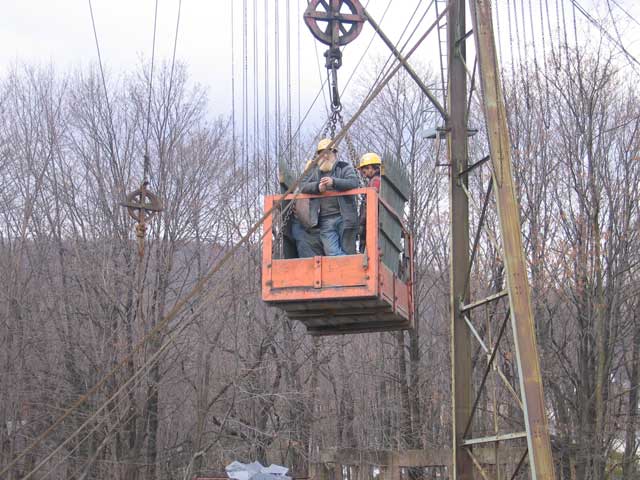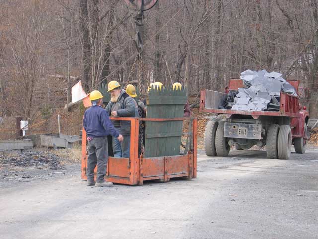 | The crew prepares to go into the hole. The fencing is going to be burned for heat.