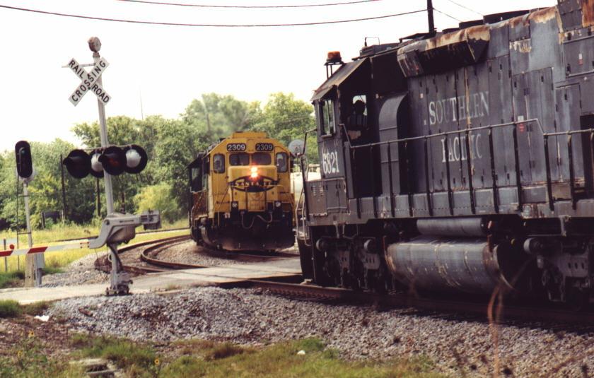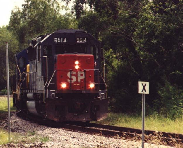 Just leaving Englewood yard Southern Pacific 9614 (EMD GP60) rounds the corner