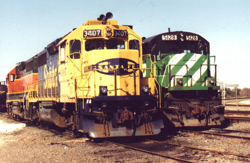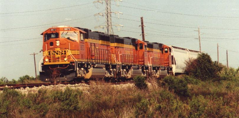 Three of the many BNSF colors sit at Alvin awaiting the next assignment.