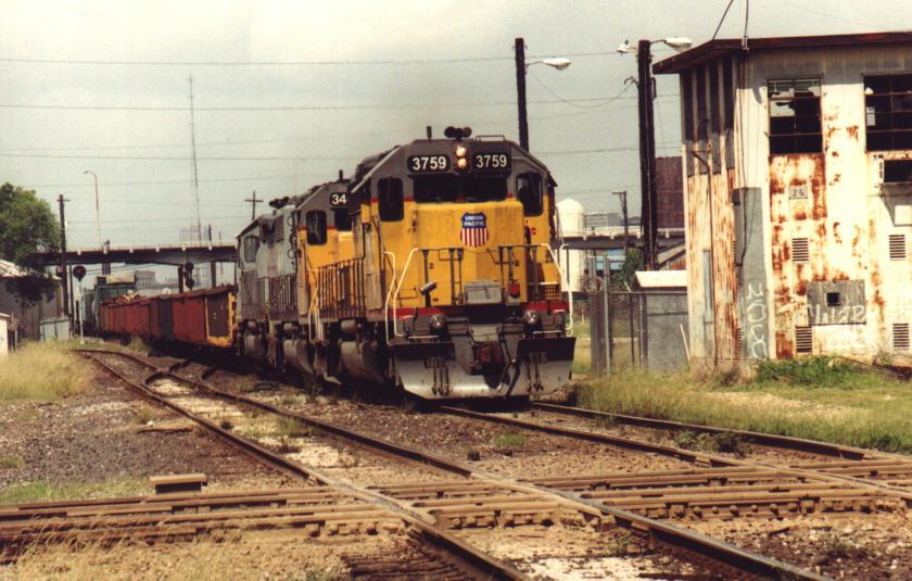 UP EMD SD40-2 power works east to Englewood after pulling through Hardy Street